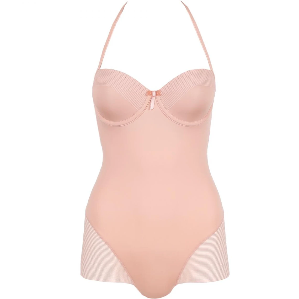 L’avant et le dos sont conçus dans une maille résistante pour une silhouette galbée. Son coloris rose poudré est comme une seconde peau pour un porter invisible sous les vêtements.