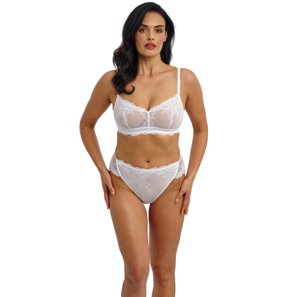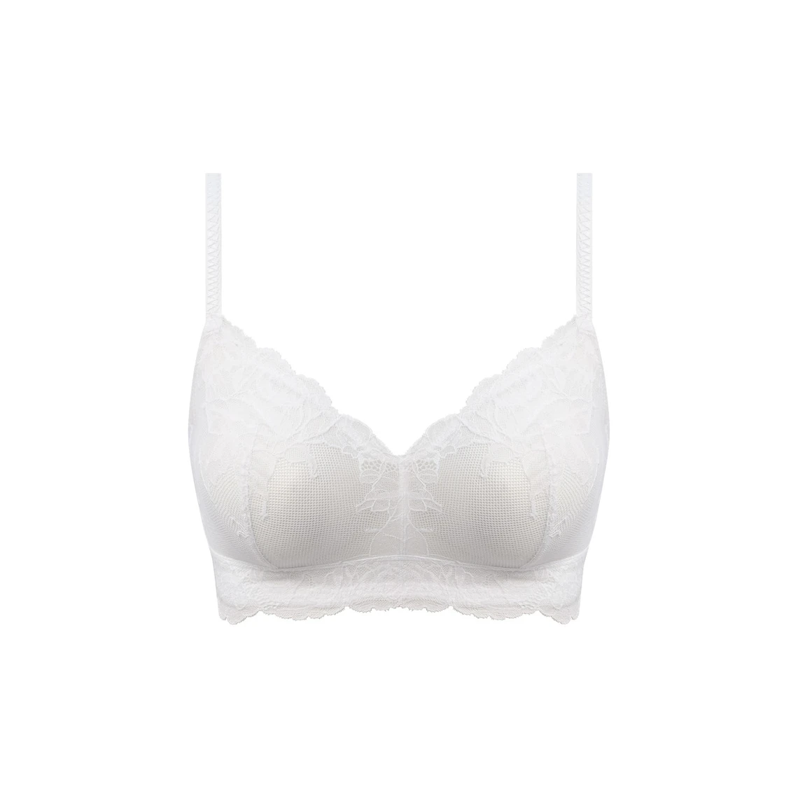 Succombez à l’élégance intemporelle de Vivid Attraction en Blanc, une teinte lumineuse et raffinée. Cette brassière sans armatures conjugue confort au quotidien et allure sophistiquée. Confectionnée avec soin, elle révèle une délicate dentelle florale festonnée posée sur une fine résille ajourée, pour un jeu de transparence subtil. Les bonnets doublés de maille assurent un maintien naturel, tandis que les renforts latéraux discrets galbent légèrement la poitrine. Les bretelles réglables à détails décoratifs et la fermeture à agrafage complètent ce modèle pensé pour sublimer la silhouette avec douceur et légèreté.