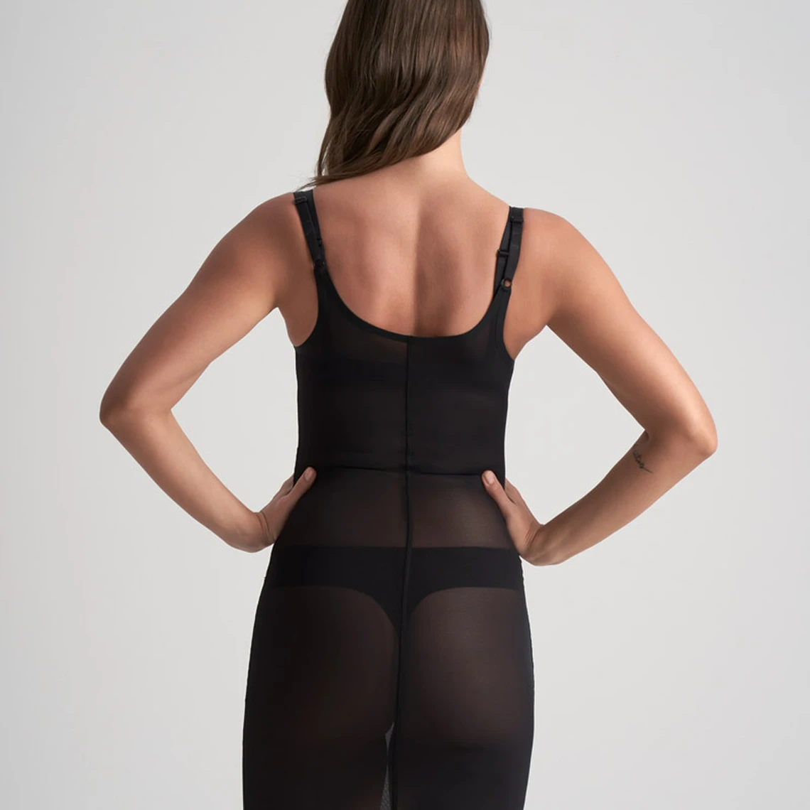 - Conception Buste Ouvert : Ce design ingénieux vous permet de porter votre soutien-gorge préféré tout en bénéficiant d’un maintien sculptant global et d’un effet push-up naturel.