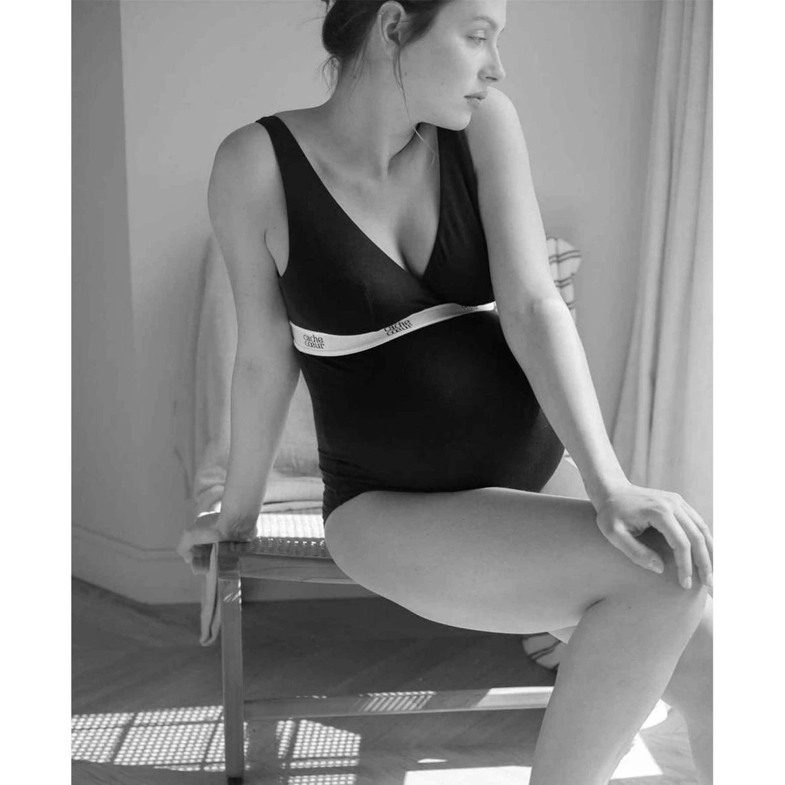 Idéal pour la grossesse, ce Body grossesse et allaitement – Noir de la marque Cache Coeur, sublimera le corps et le bidou …