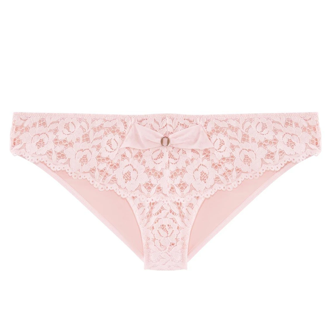 Slip tout dentelle à la découpe confortable. Bijou argenté à la taille, inséré tel un passe ruban dans du tulle. Elastique taille plat, finition intérieure mousse. Ouvertures jambes confectionnées avec une fine laminette stretch de maintien. Hauteur côté : 4,5 cm. Fond doublé 100% coton. Création florale au top de la séduction actuelle. Du 36 au 46/48.