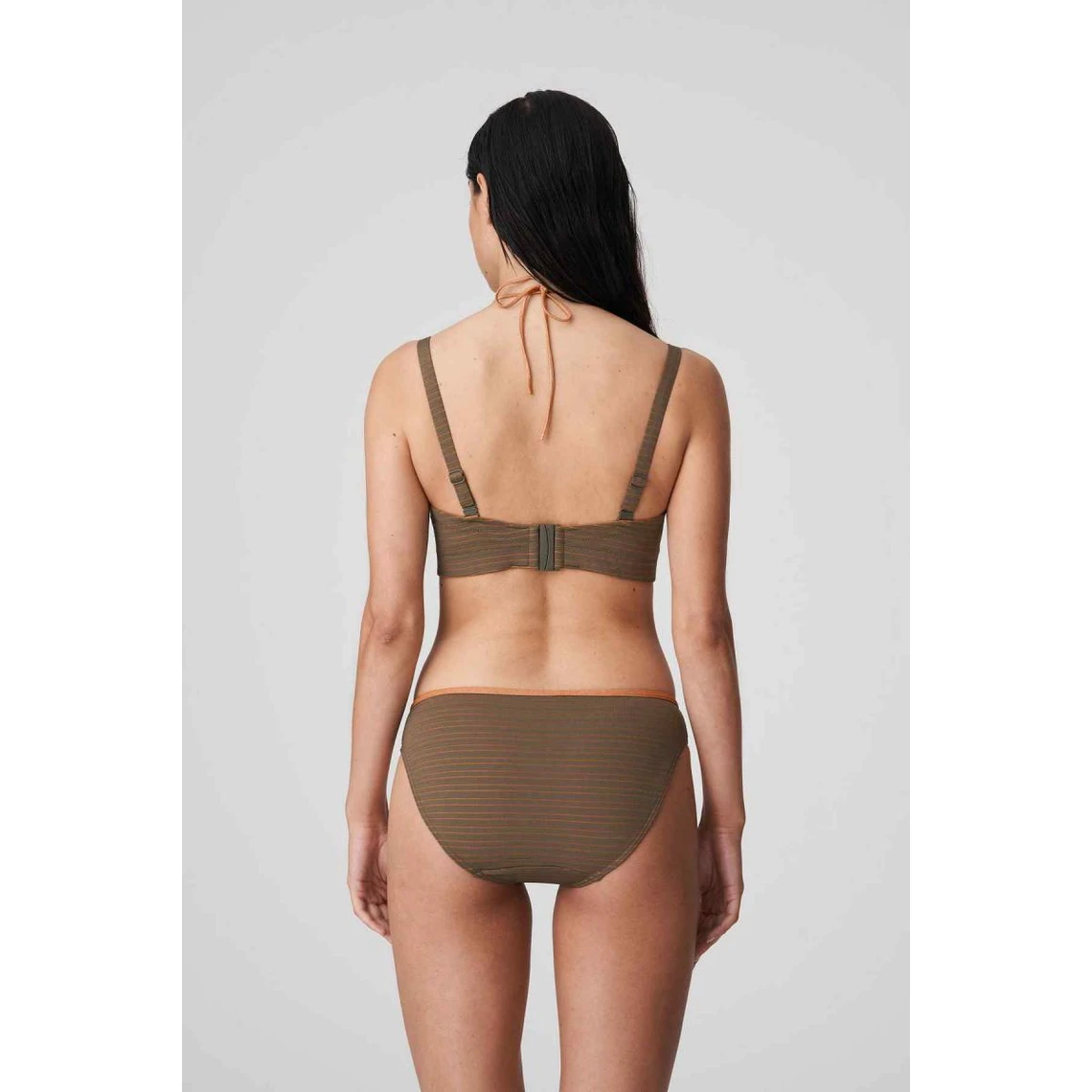 Ce haut de maillot se présente avec un design spécial, garantissant élégance et aisance en toute circonstance. Il possède des bretelles amovibles et une deuxième attache fine en tour de cou soulignant l’entre poitrine.