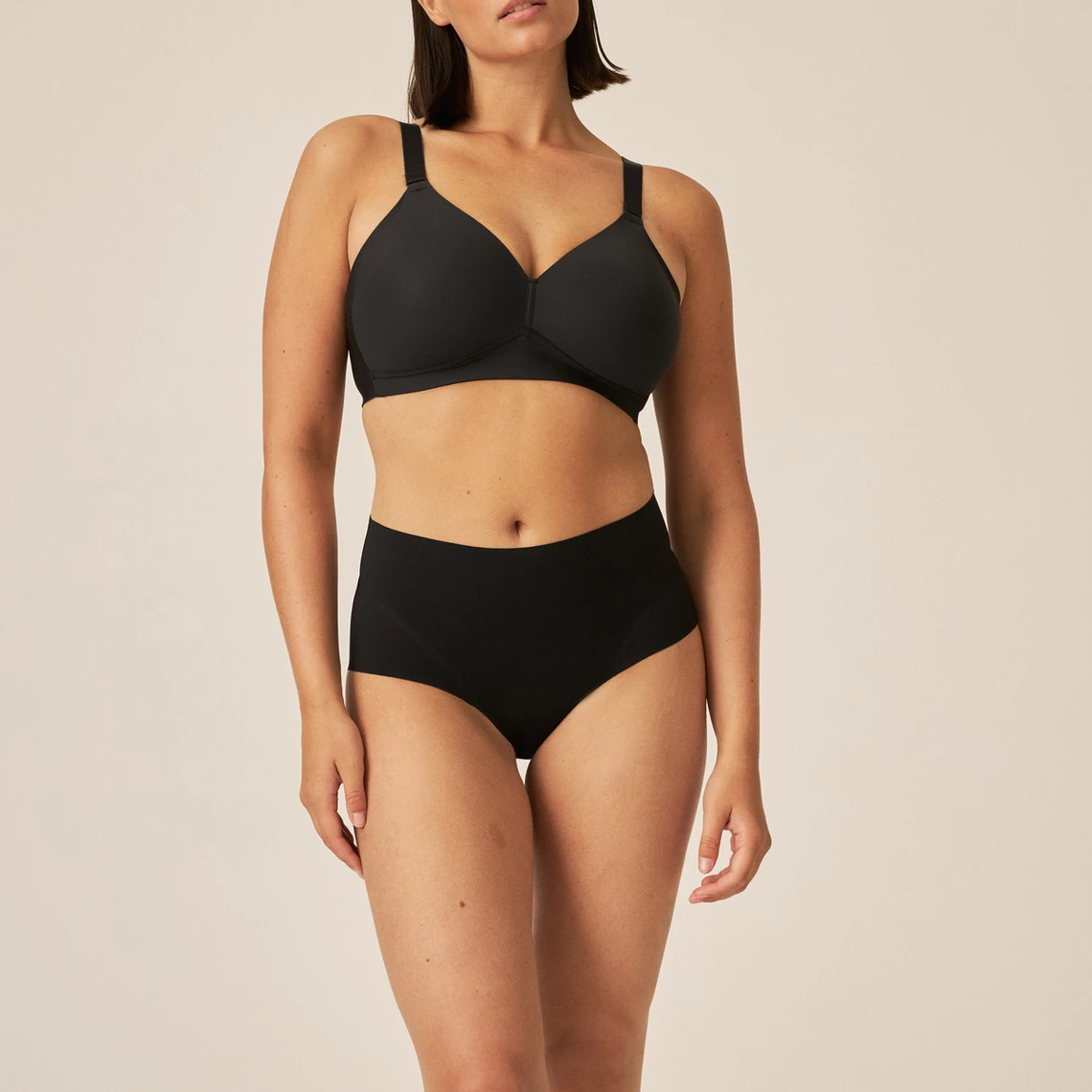 Notre modèle lissant sur les côtés dissimule parfaitement les petites rondeurs. Ses parties latérales, plus hautes, permettent de lisser en douceur les zones sous les bras. Grâce à sa large bande sous poitrine, ce soutien-gorge offre le maintien souhaité, même sans armatures.