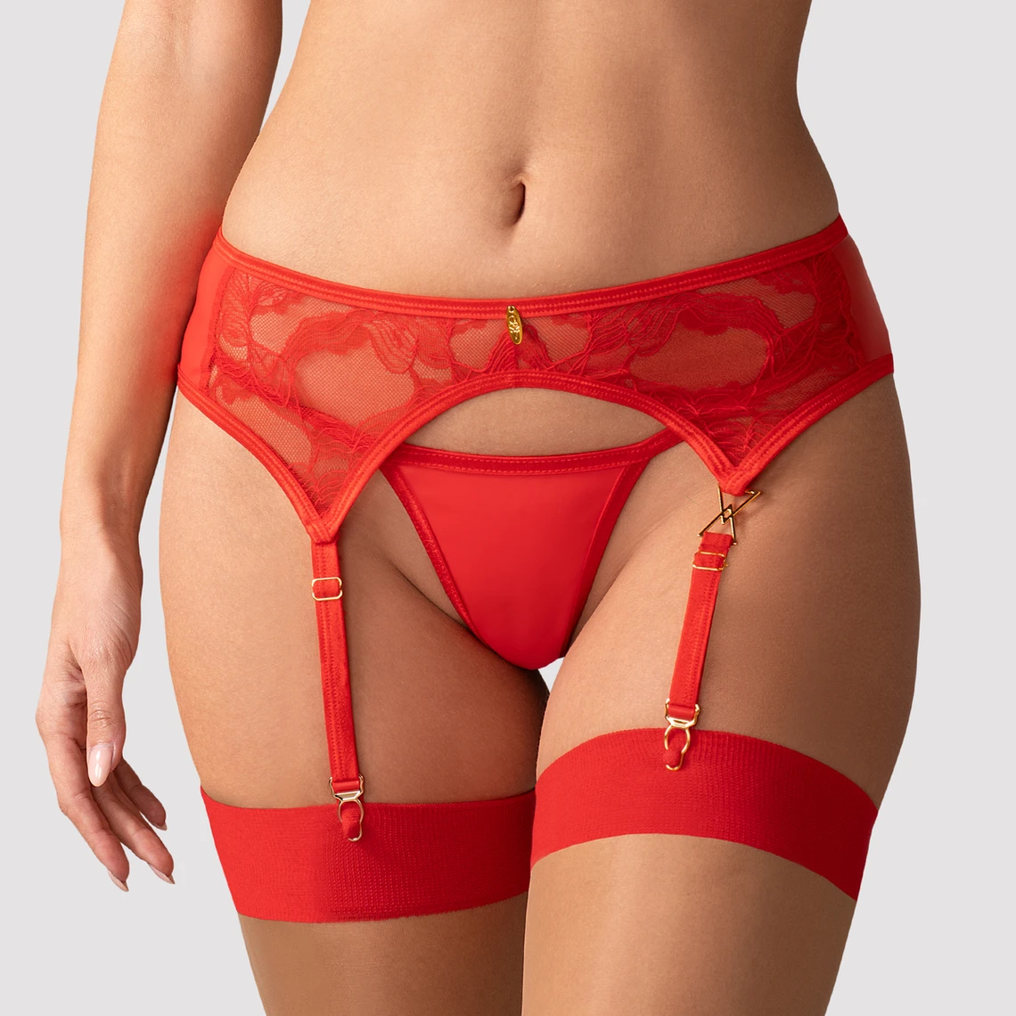 Découvrez l’essence de l’élégance classique avec le porte-jarretelles Aliosa, où la dentelle de bon goût rencontre une sophistication frappante. La riche teinte rouge est magnifiquement mise en valeur par des détails dorés luxueux, créant un contraste visuel saisissant. Bretelles réglables et une fixation sécurisée au dos assurent un ajustement parfait.