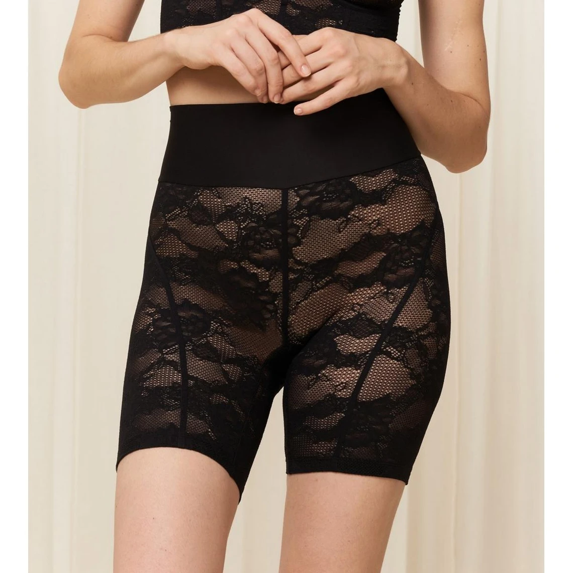 Il est conçu dans une dentelle ajourée très sexy et habillée sensuellement les courbes de la silhouette. Sa taille est marquée par une large ceinture élastiquée, garantissant un excellent maintien et un effet ventre plat assuré. Il se trouve doublé d’un gousset 100% coton au fond pour promettre une parfaite hygiène.