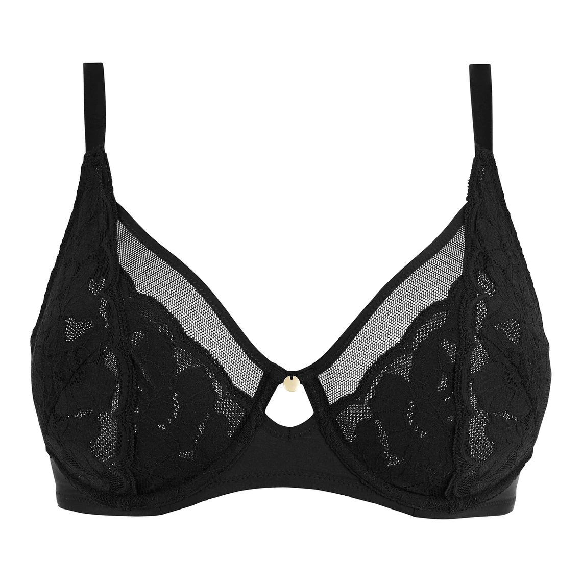 - Finitions Précieuses : Un bijou doré à l’entre-sein ajouré ajoute un détail chic et lumineux à cette lingerie sobre.