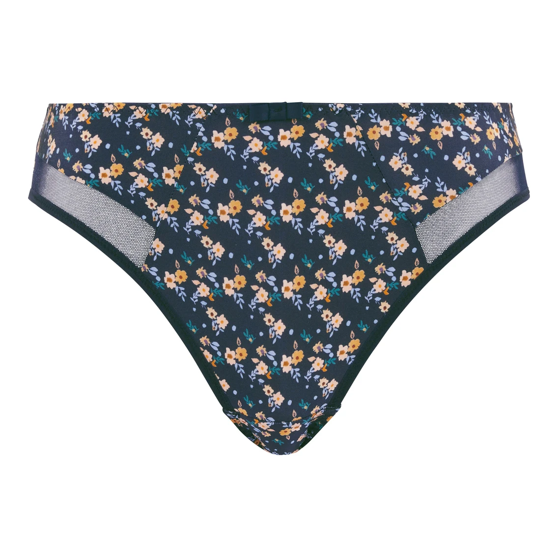 Succombez au charme du slip Complice de la célèbre marque Sans Complexe. Conçu pour la femme moderne qui ne souhaite faire aucun compromis entre style et bien-être, ce modèle à l’imprimé floral bleu apporte une bouffée de fraîcheur à votre tiroir de lingerie. Sa coupe classique, légèrement échancrée sur le devant, sublime vos courbes tout en assurant un maintien irréprochable et une aisance totale tout au long de la journée.