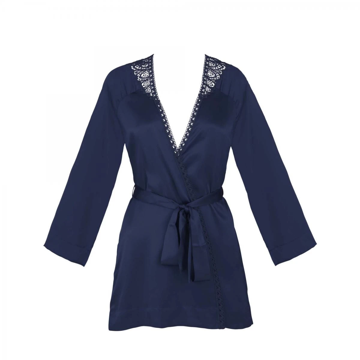 Ce kimono séduction est réalisé dans une maille en satin douce et confortable au contact de la peau lors du porter. Cette maille est réhaussée par une fine dentelle aux finitions travaillées. Cette dernière est présente aux poignets mais également sur le bas du kimono.