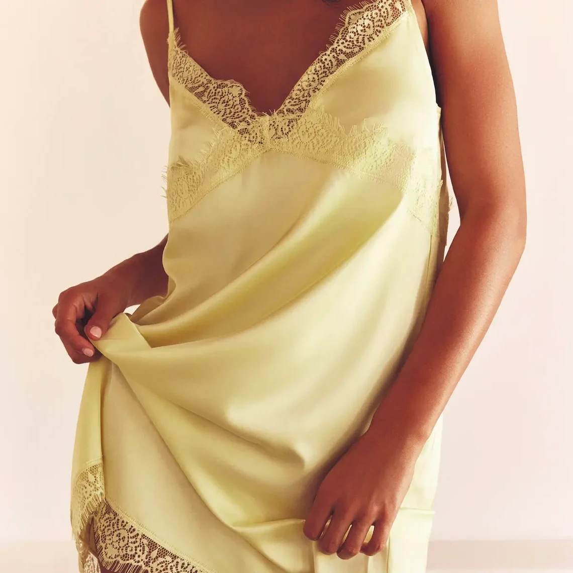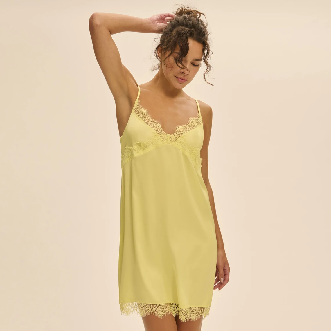 – Nuisette en satin avec dentelle.