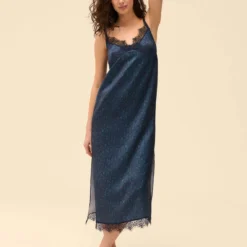 Nuisette longue en satin avec dentelle.