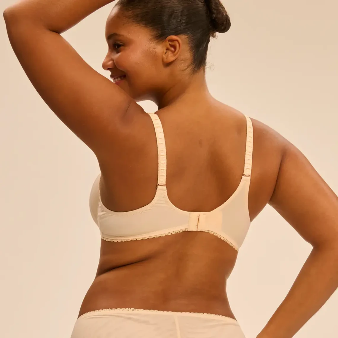 - Maintien et Galbe Parfaits: Sa coupe emboîtante avec armatures assure un soutien optimal tout en sculptant une poitrine au galbe naturellement rond et maîtrisé.