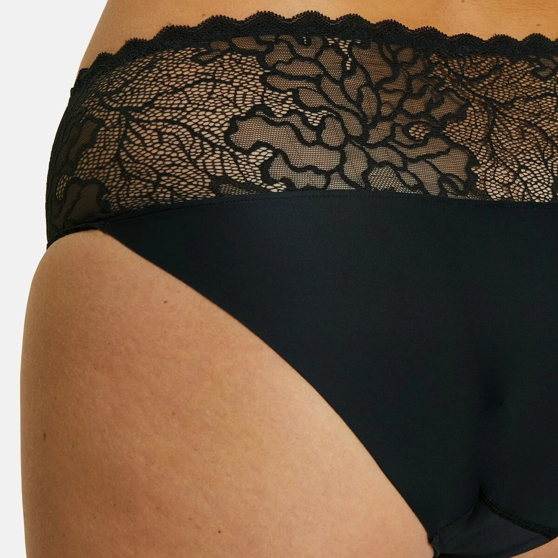La coupe classique de cette culotte en fait un dessous incontournable de toutes femmes. La partie supérieure est faite d’une jolie dentelle graphique pour une silhouette chic et moderne. Une maille microfibre habille l’intimité et le fessier. D’une grande douceur, elle confère confort et bien-être. Cette pièce de lingerie est parfaite par une finition lisse pour un effet seconde peau.