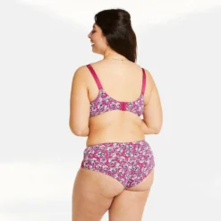 Soutien-gorge armatures grand maintien en microfibre imprimée au motif fleurs minimalistes et bande de dentelle florale. Forme rassurante. Bijou fantaisie aux départs de bretelles et petit noeud graphique à l’entre-bonnets. Bretelles larges réglables. Fermeture dos : 3 agrafes, 3 positions. Disponible du 90D au 110E.