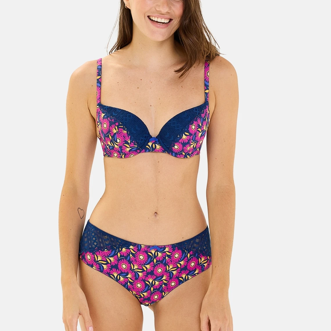Soutien-gorge coques à armatures – Tournesol Fond Bleu Rose foncé – Billet Doux