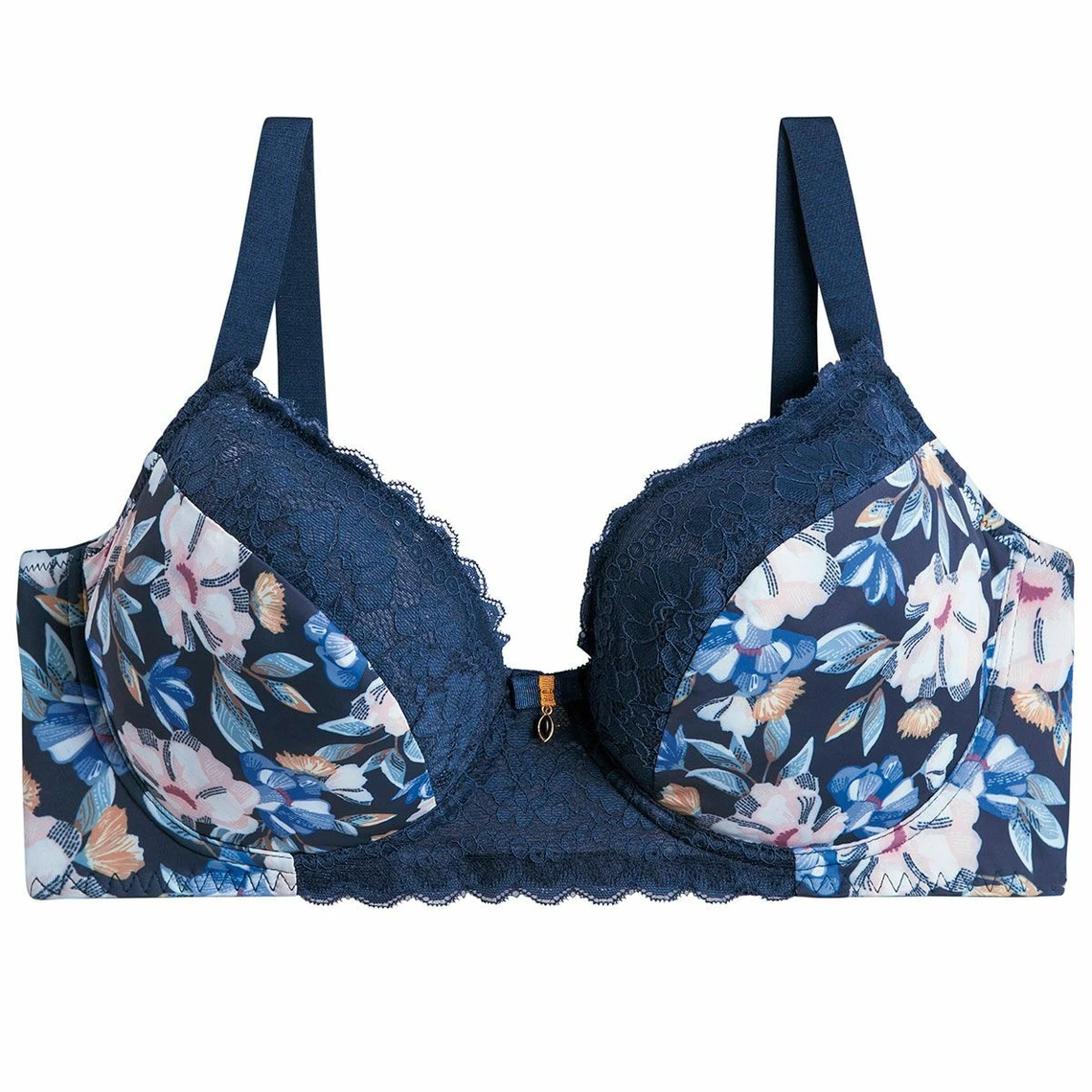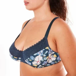 La maille qui compose les bonnets est joliment imprimĂ©e de motifs floraux tandis qu’une dentelle dĂ©licate habille le haut des bonnets.