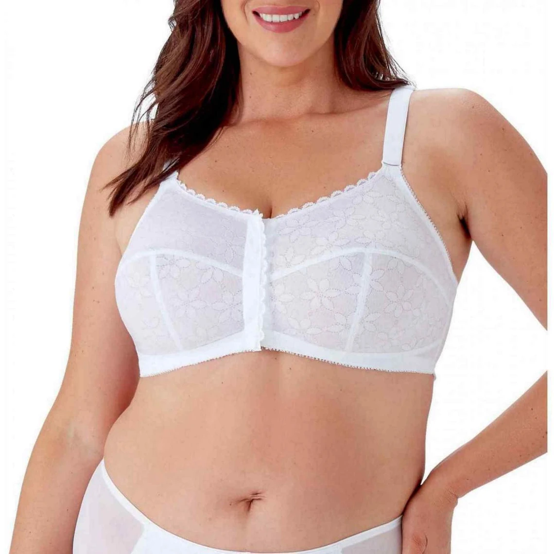 Les larges bretelles en maille blanche sont ajustables, afin d’épouser parfaitement vos courbes. Le modèle s’attache à l’avant, laissant le dos libre, pour un grand confort au porter.