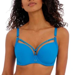 Succombez au charme de la collection Temptress par Freya. Ce soutien-gorge bleu allie à la perfection une esthétique audacieuse et le savoir-faire légendaire de la marque anglaise pour sublimer votre silhouette au quotidien avec élégance.