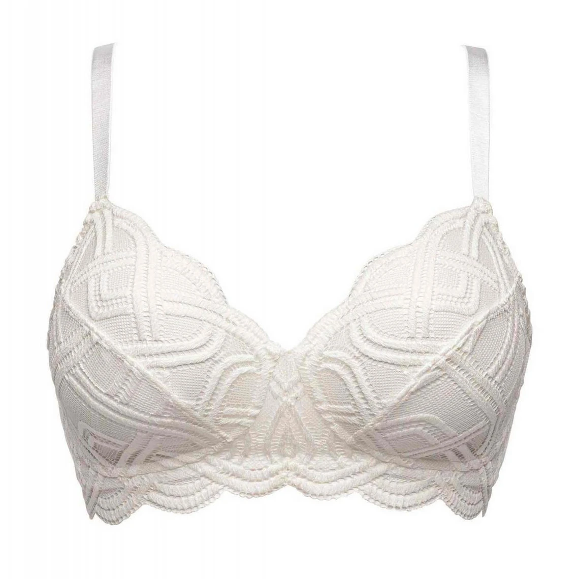 Entièrement en dentelle, il ne peut que conquérir. Sa coupe emboîtante et son décolleté en V épousent les courbes et mettent parfaitement en valeur le galbe des seins. Souples et sans armatures, ses bonnets assurent légèreté, maintien et confort.