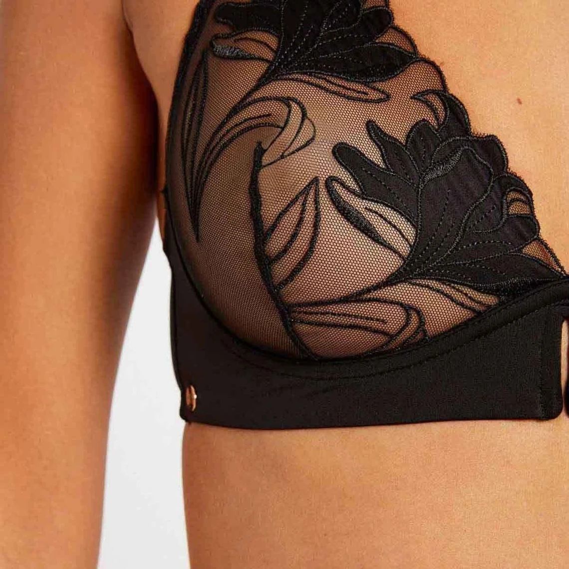 Matière principale : 71% Polyamide 29% Elasthanne. Broderie : 100% Polyester. Doublure panneau avant : 100% Polyamide. Matière ajourée : 95% Polyamide 5% Elasthanne.