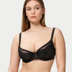 Cette pièce de type spacer est en dentelle et possède des bonnets profonds doublés de tulle spécialement conçus pour les poitrines généreuses. Les armatures 3D utilisées sont flexibles et résistantes à la fois, elles s’adaptent parfaitement aux mouvements de votre corps pour vous assurer confort et maintien.