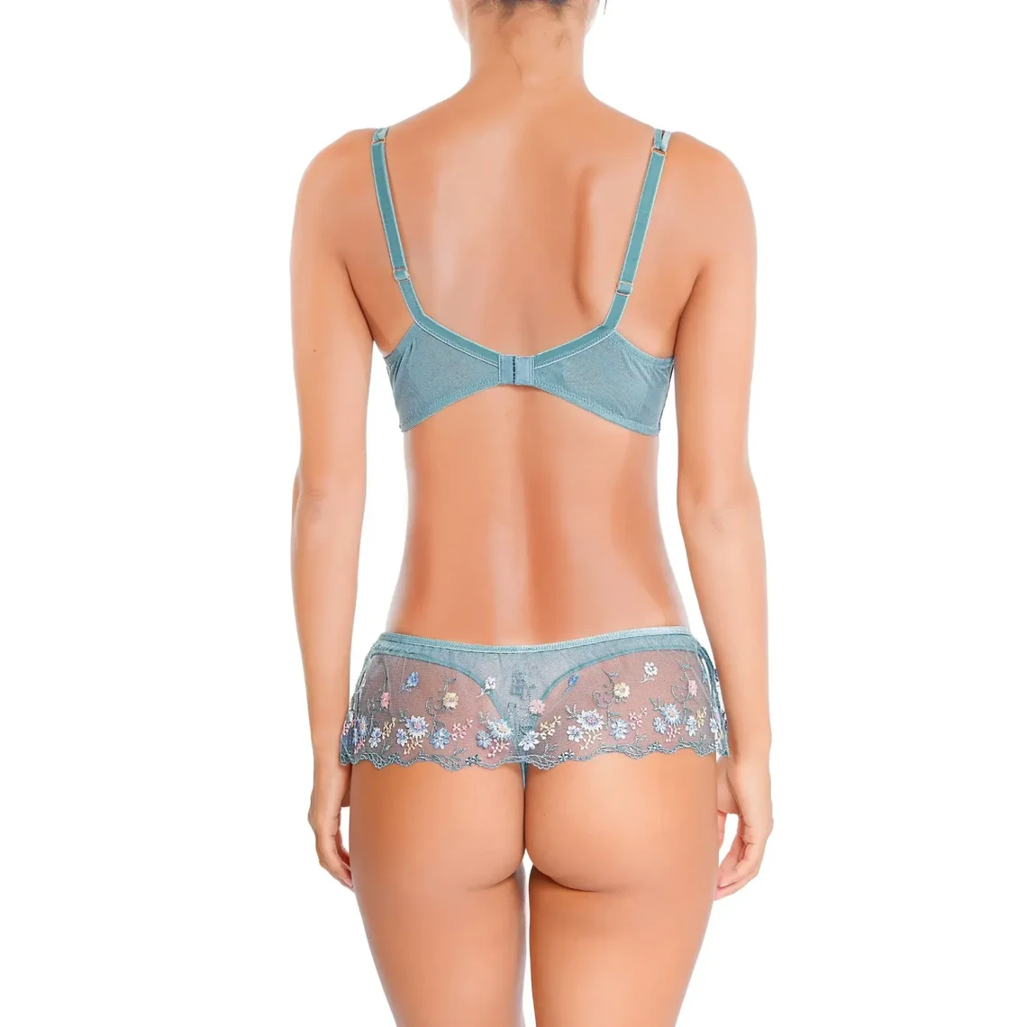 Dans des nuances douces de blush, ce soutien-gorge évoque une romance intemporelle, une teinte qui se fond avec la peau pour un effet enchanteur. Sur le décolleté, un trim d’un vert pomme éclatant apporte une note de fraîcheur, un détail raffiné qui souligne avec subtilité la féminité.