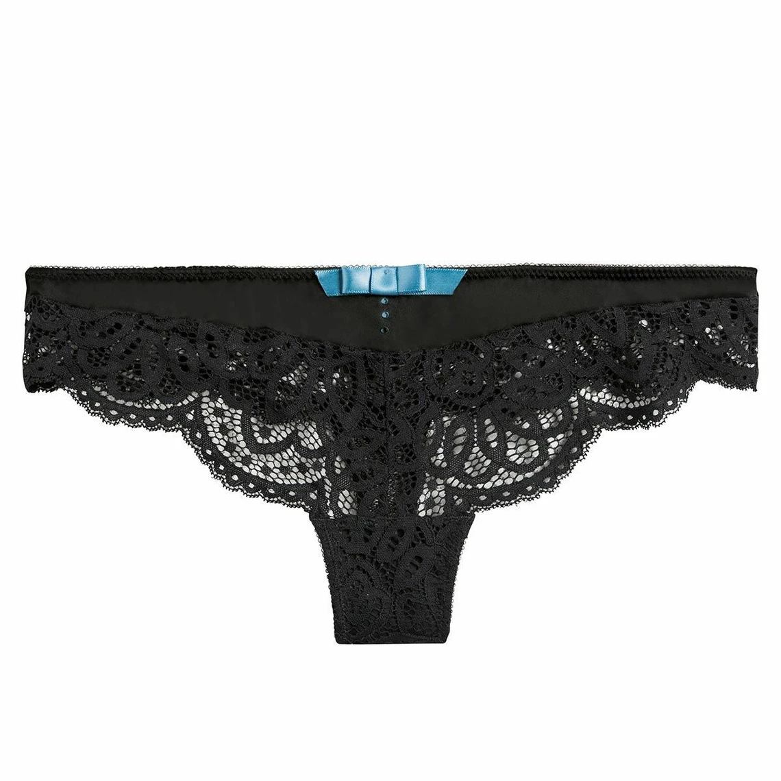 Découvrez ce string sexy et raffiné en dentelle florale et satin noir issu de la collection RIVALE par la marque Pomm’poiree. Il est sublimé par un petit strass bleu à la ceinture qui apporte cette touche de légèreté au modèle. Le fond du string est doublé d’un gousset 100% coton. Le modèle est disponible du 36/38 au 42/44.