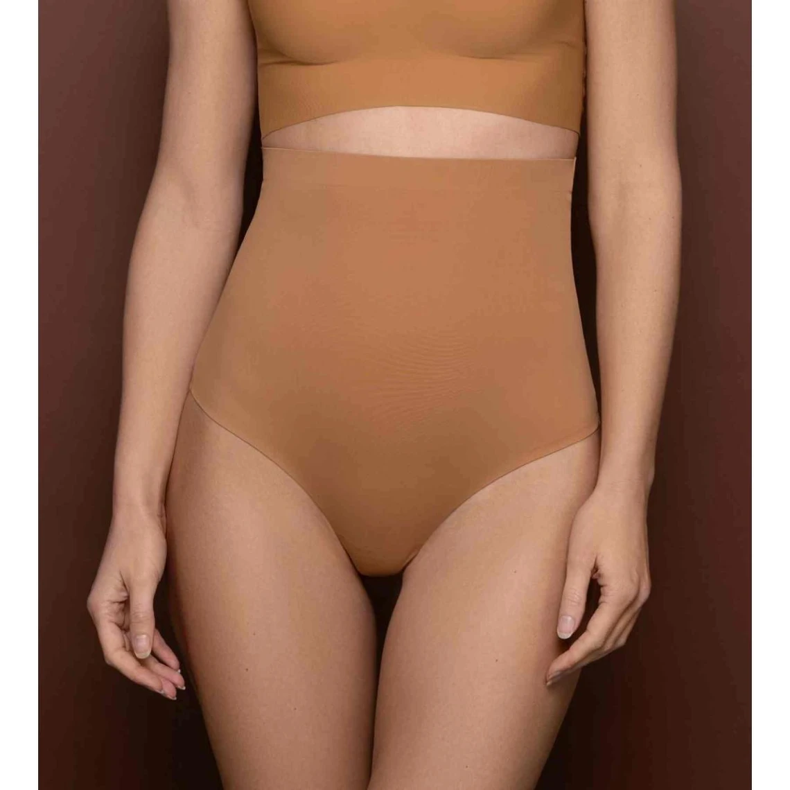 Mettez en valeur votre silhouette avec ce String taille haute invisible marron clair Invisible High Waist Thong de la collection Invisible Shapewear de Bye Bra.