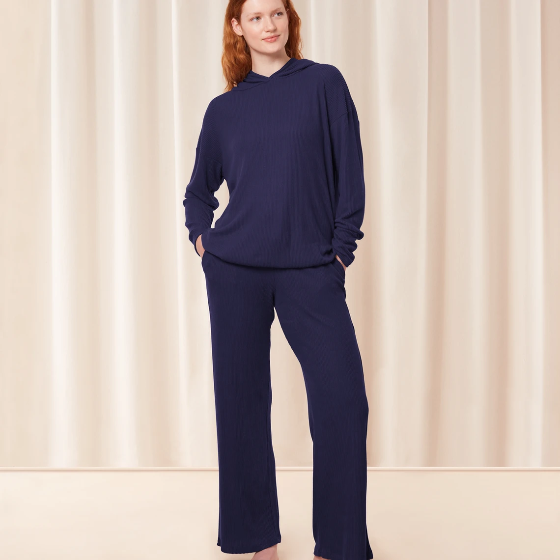 IdĂ©al pour vos nuits et vos moments cocooning, voici le Pantalon large – Bleu de la marque Triumph.